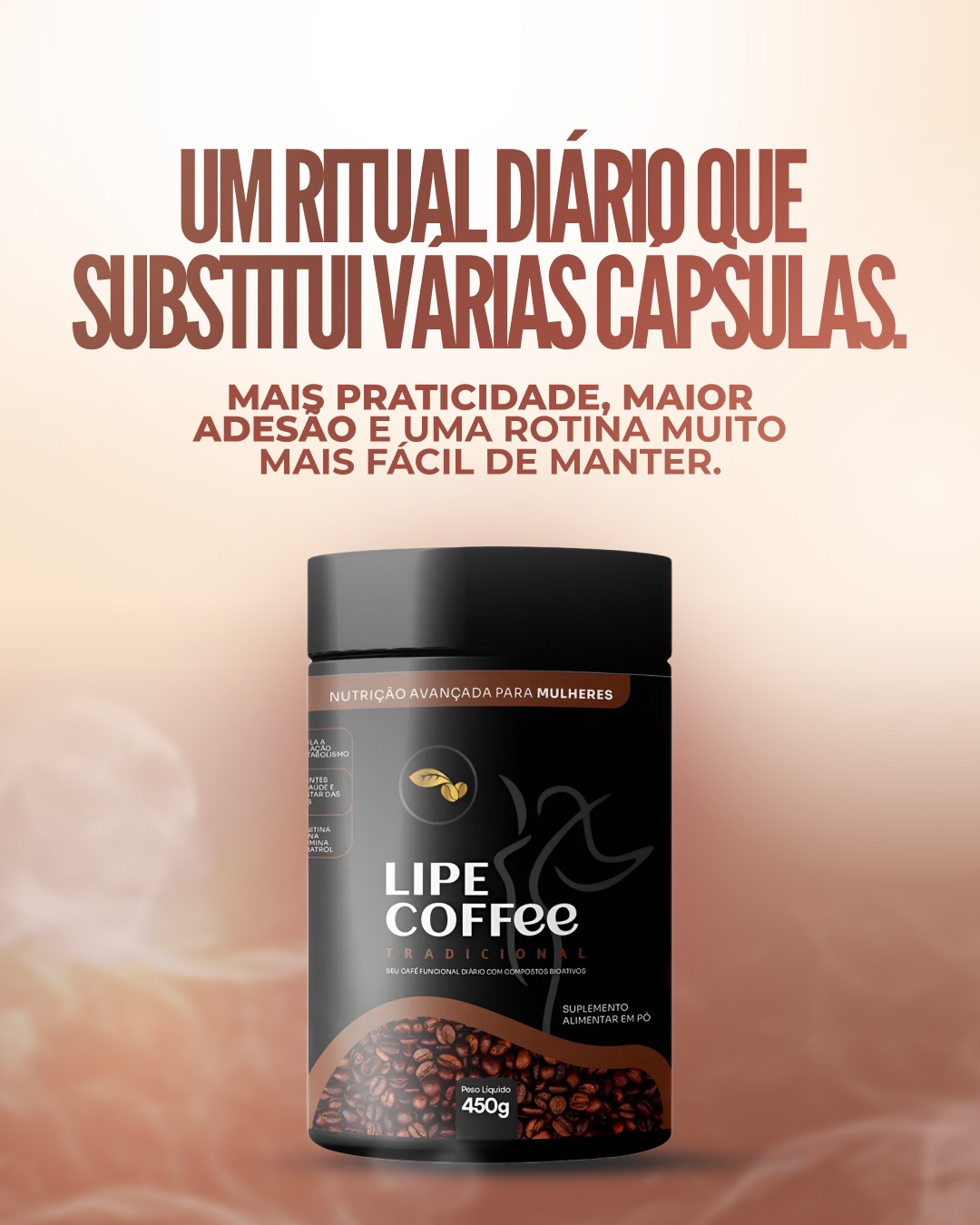 Procurando um LipeCoffee® para rotina com Lipedema? O LipeCoffee® é um suplemento alimentar em pó com café gourmet e bioativos para apoiar energia, foco e consistência diária, com praticidade e sabor.