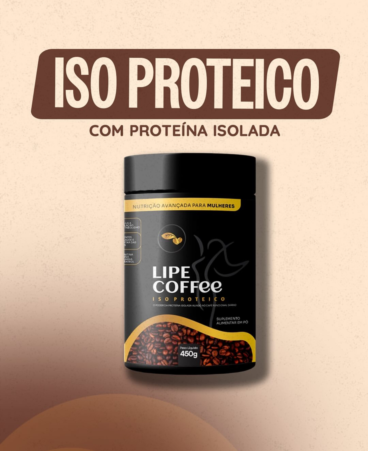 O LipeCoffee® PRO ISO é um café funcional proteico que combina café gourmet e Whey Protein Isolado com bioativos estratégicos para apoiar energia, foco, desempenho físico e organização nutricional diária.